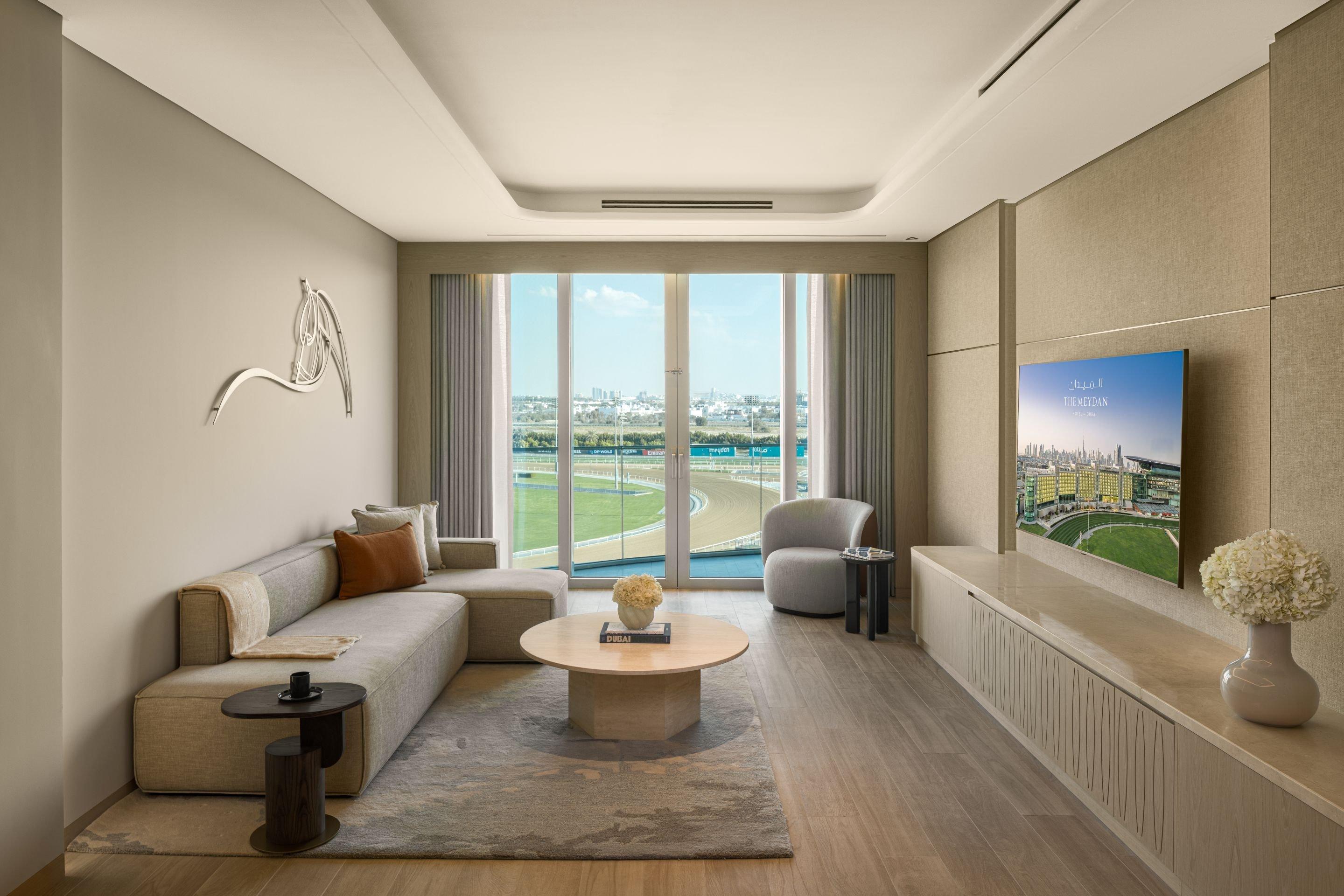 Designed with space and privacy in mind, the Family Suite is where cherished family moments unfold. Comprised of a Panoramic Suite and a Superior Twin Room, this two-bedroom suite promises bright entertaining areas, spacious bedrooms complete with full ensuite bathrooms, and stretching views of the Meydan racetrack.