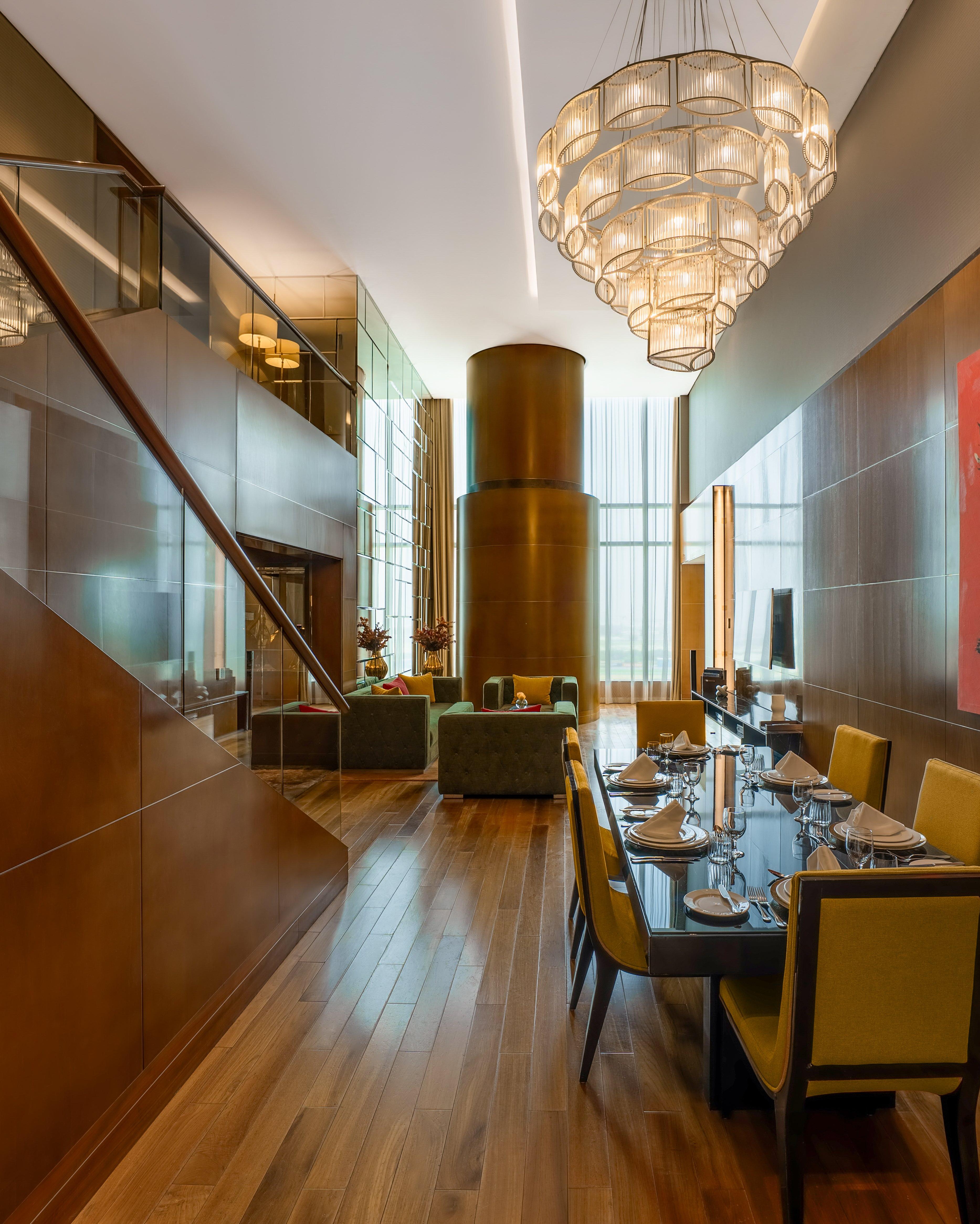 Our split-level Presidential Duplex Suite is among the largest hotel suites in Dubai, and comes with sweeping views of the world-famous racetrack from your private balcony. On the lower floor, a generous lounge area, private bar and eight-person dining table provide a dynamic space for entertaining, whether you’re hosting an intimate gathering or soaking in the race day action.